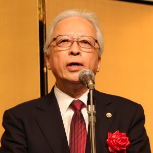 日本弁理士会会長の渡邉は挨拶のなかで、現在検討されている法改正への期待と、前年度から引き続き日本弁理士会の目玉事業としている「知財広め隊」について言及した。