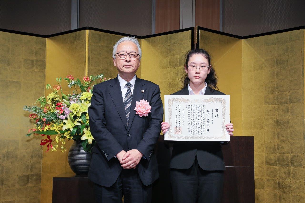 出願支援対象者の中から選ばれる主催者賞のうち、日本弁理士会会長賞は、東京工業大学附属科学技術高等学校の早川宙良さん(パテントコンテスト)、福岡市立博多工業高等学校の中原未裕さん(デザインパテントコンテスト)が受賞した。