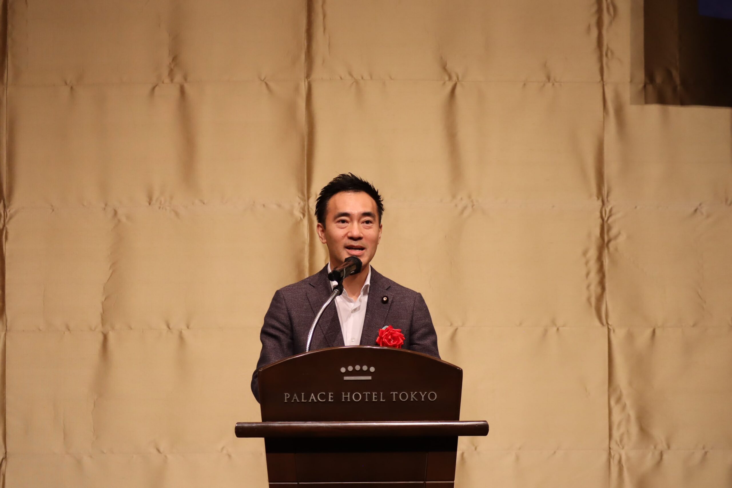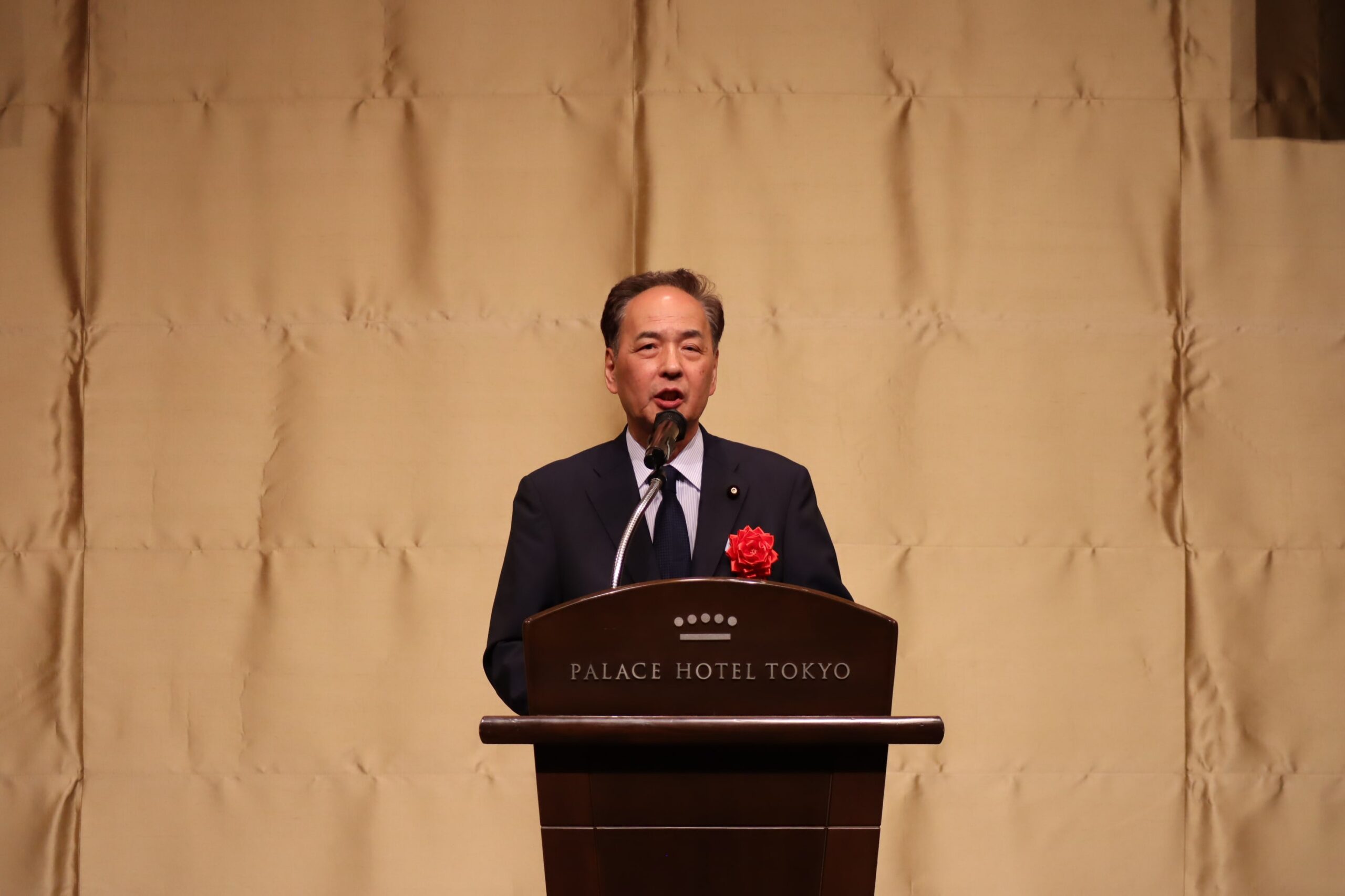 記念祝賀会では、各政党の国会議員や特許庁長官など多数のご来賓のご臨席を賜り、また多くの会員の出席のもと、終始盛況であった。