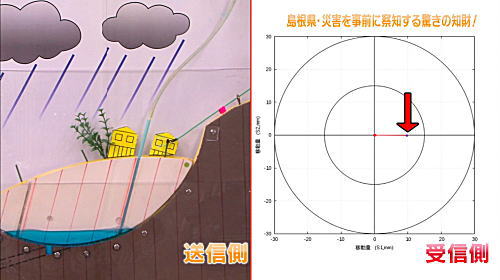 島根県の株式会社藤井基礎設計事務所が開発した災害安全管理システム「のび太」は、山の斜面などに杭を打ち込み、その杭と「のび太」をワイヤーで結ぶことで、地滑りなどで地面が動く際にはワイヤーが引っ張られて検知し、遠隔で0.1mm単位での計測を常時行うことができる。