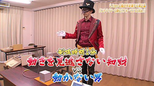 今回は、静止パフォーマンスを得意とするパントマイマーが本当に全く動かないのか?を測定することにチャレンジした。動きを見逃さない知財と動かない男、果たしてどちらに軍配が上がったのか?!