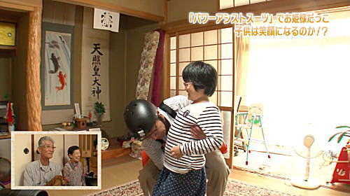 今回は子供の笑顔を求めて実験してみた。大きくなり、おじいちゃん・おばあちゃんがだっこできなくなった子供をパワーアシストスーツを装着してだっこを試みた。果たしてだっこは成功して子供を笑顔にさせることができたのか?!
