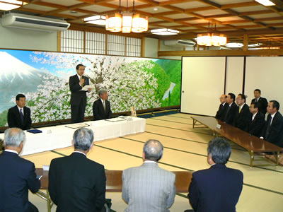 締結調印式は、富士宮市の小室直義市長、富士宮商工会議所の篠原松太郎副会頭、日本弁理士会等の関係者30人余が出席して行われ、中島会長から「富士宮市が知的財産の重要性に早くから注目し、その事業に積極的に取り組んできたことに強い感銘を受けている。同市が知的財産推進のトップランナーとなり、全国の手本となっていただけるよう日本弁理士会が尽力したい」との挨拶があった。