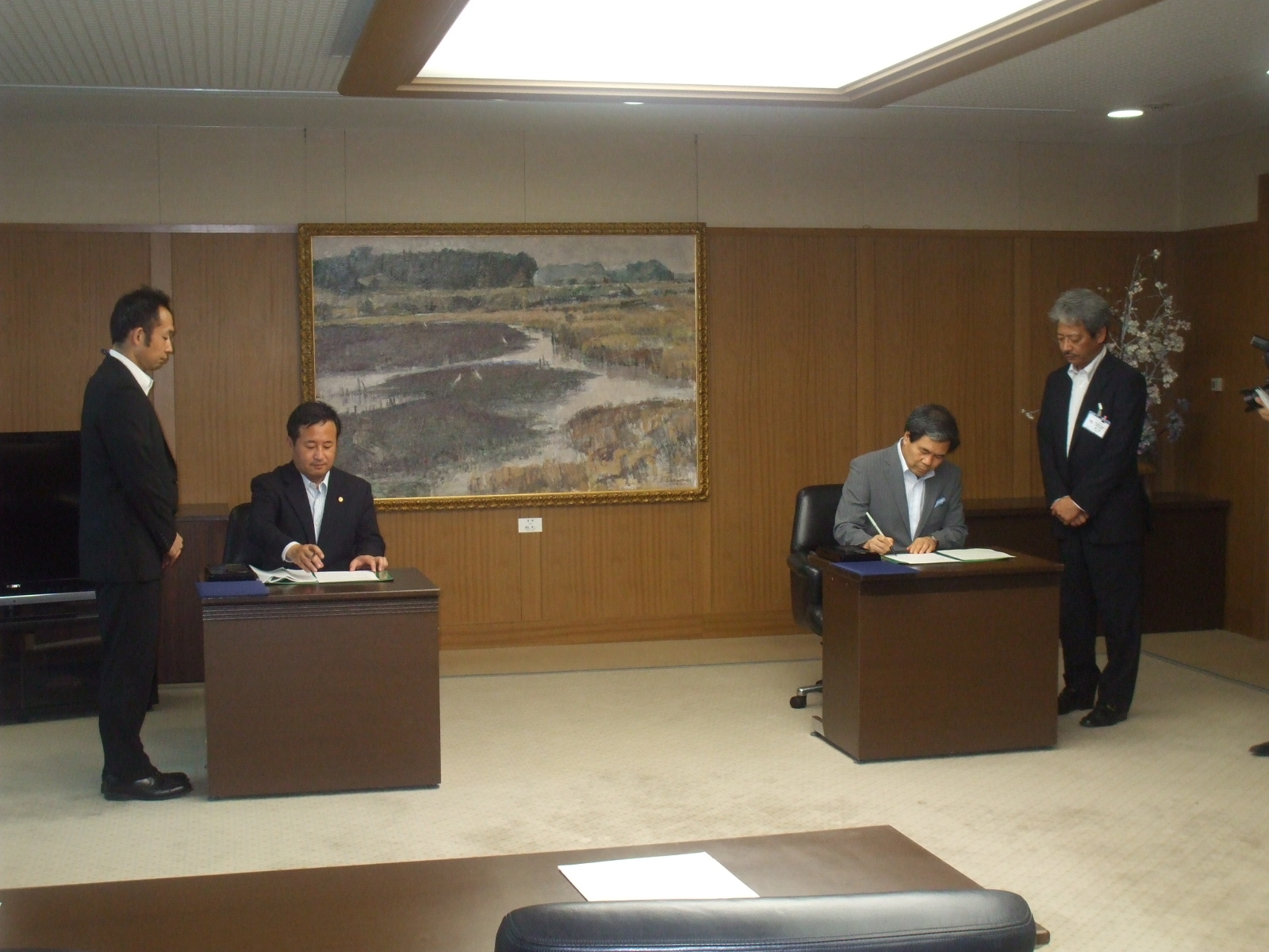 調印式では、蒲島知事及び奥山会長が協定書にそれぞれ署名し、滞りなく行なわれた。