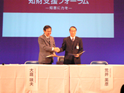 なお、平成19年11月30日(金)には、長野県諏訪市において、日本弁理士会主催の「知財支援フォーラム」が開催され、フォーラムの事業として今回の調印式を披露し、日本弁理士会の大庭東海支部長と長野県の荒井商工部長による覚書の署名が行われました。