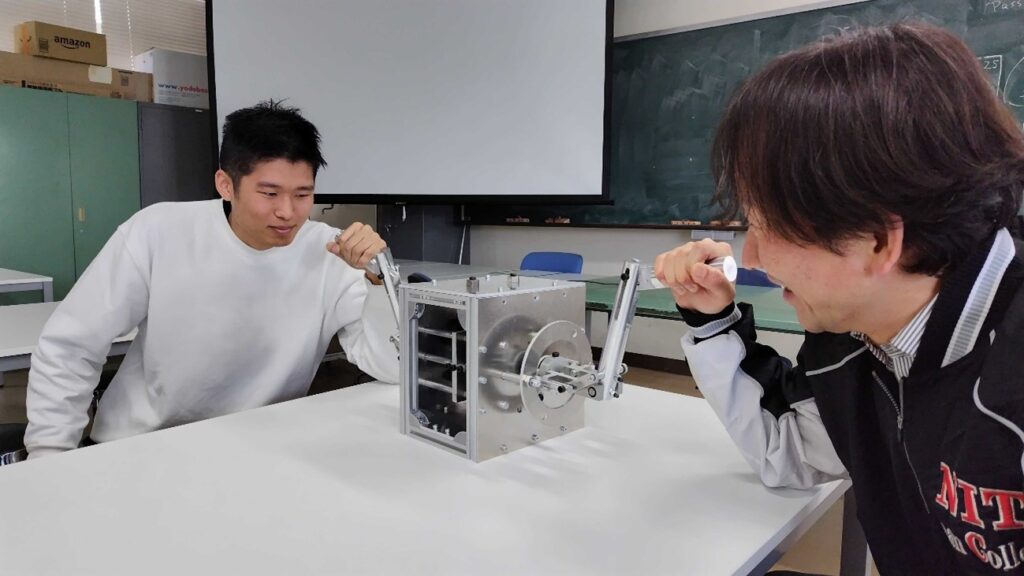 お父さんの影響で子どもの頃から腕相撲を楽しんできた桑原さんは公式競技にこそ参加していないが、地域のお祭りなどの腕相撲大会でトップクラスの成績を上げてきたという。高専に進学したのはコロナ禍の真っ只中、講義もリモートで腕相撲どころではなかったが、3年次から休み時間などに友人と腕相撲ができるようになった。その中で、右利きの桑原さんは左利きの強い友人と実力勝負ができないことに物足りなさを感じていた。その友人と対戦したいという思いから、卒業研究の自由課題のテーマとして、機械工学の知識を活かして利き手の異なる相手と勝負できる装置の開発を迷いなく選んだ。同校で知財教育も担当する西本浩司教授は桑原さんの最初のアイデアを見せられた時に「発想、実現しようとする手段に新規性、進歩性が認められる」と判断してパテコン応募を勧めた。桑原さんは「堅そうなコンテストなので、腕相撲の装置を出していいのかと思ったけど、せっかく作るのだから出してみよう」と応募を決めたという。