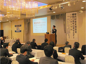第2部では、日本弁理士会東海支部所属の富澤正弁理士による、「開放特許の活用はビジネスを発展させるチャンスです!」と題したセミナーが開催された。数多くの事例を挙げながら臨場感のあるお話がなされた。事例の多くは富澤弁理士本人が携わっているものであり実感がこもっており、企業担当者は勿論のこと弁理士にとっても有意義な内容であった。