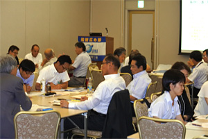 第2部のワークショップでは、参加者5~6名の各島に、弁理士が1~2名参加し、事前に用意された課題に基づいて、知的財産権の活用と保護について、意見交換を行うとともに、参加者の方々が直面している知的財産権に関する疑問や問題に対して弁理士よりアドバイスを行った。また、参加者である企業の方と佐賀県担当者が情報交換を行う橋渡しの場としても活用戴いた。