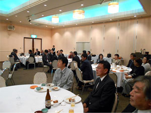 交流会では、受講者に5つの丸テーブルに分かれて座っていただくとともに、それぞれのテーブルに弁理士を配置して、セミナーの感想を聞いたり、知財に関する相談や意見交換を行った。交流会の半ばからは、受講者の方や弁理士も最初に座っていたテーブルを離れてランダムに移動し、参加者同士で広く交流を図ることができた。