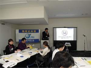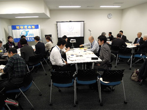 続く第2部のワークショップでは参加者3~4名と弁理士1~2名からなるグループを5つ作り、グループごとに弁理士及び参加者の自己紹介が行われた後、初心者向け仮想事例を用いどのような知的財産制度を用いてどのように保護が可能か、また複数の保護方法がある場合には互いの優先順位をどうすればいいかなどについて、活発な討議・意見交換が行われた。また、事例検討することで参加者が気付いた新たな疑問点についても意見が交わされるなど、事例の枠を超えた議論もなされていた。セミナーのみでは実感しづらい知的財産を事例を用いて議論し検討したことから、理解が深まったと思われる。