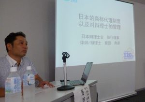 | In the morning, Mr. Norihiko FUJITA, the Executive Director of JPAA, Patent Attorney, Attorney at law, delivered a presentation regarding “Japanese Trademark Agency System and Management of Patent Attorneys in Japan”. |