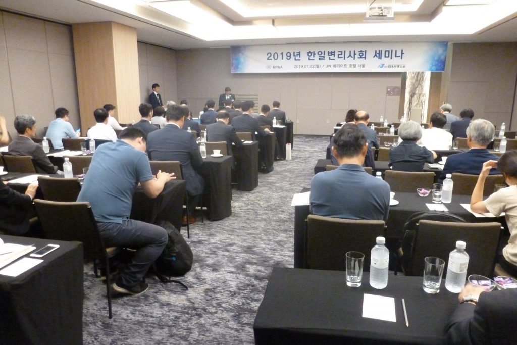 The delegation of JPAA visited Korean Patent Attorneys Association in Seoul, Korea on July 22, and a closed meeting, an open seminar, and a reception were held.