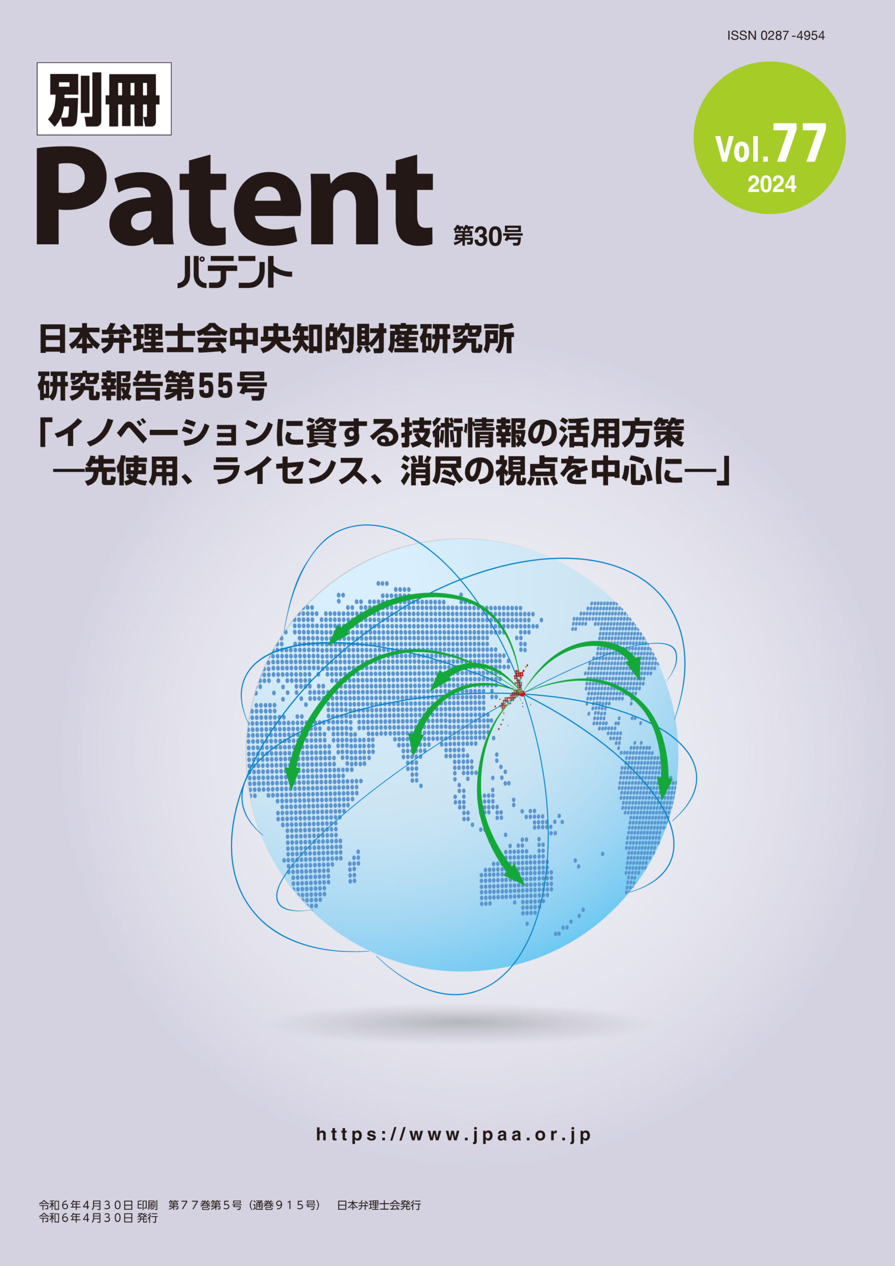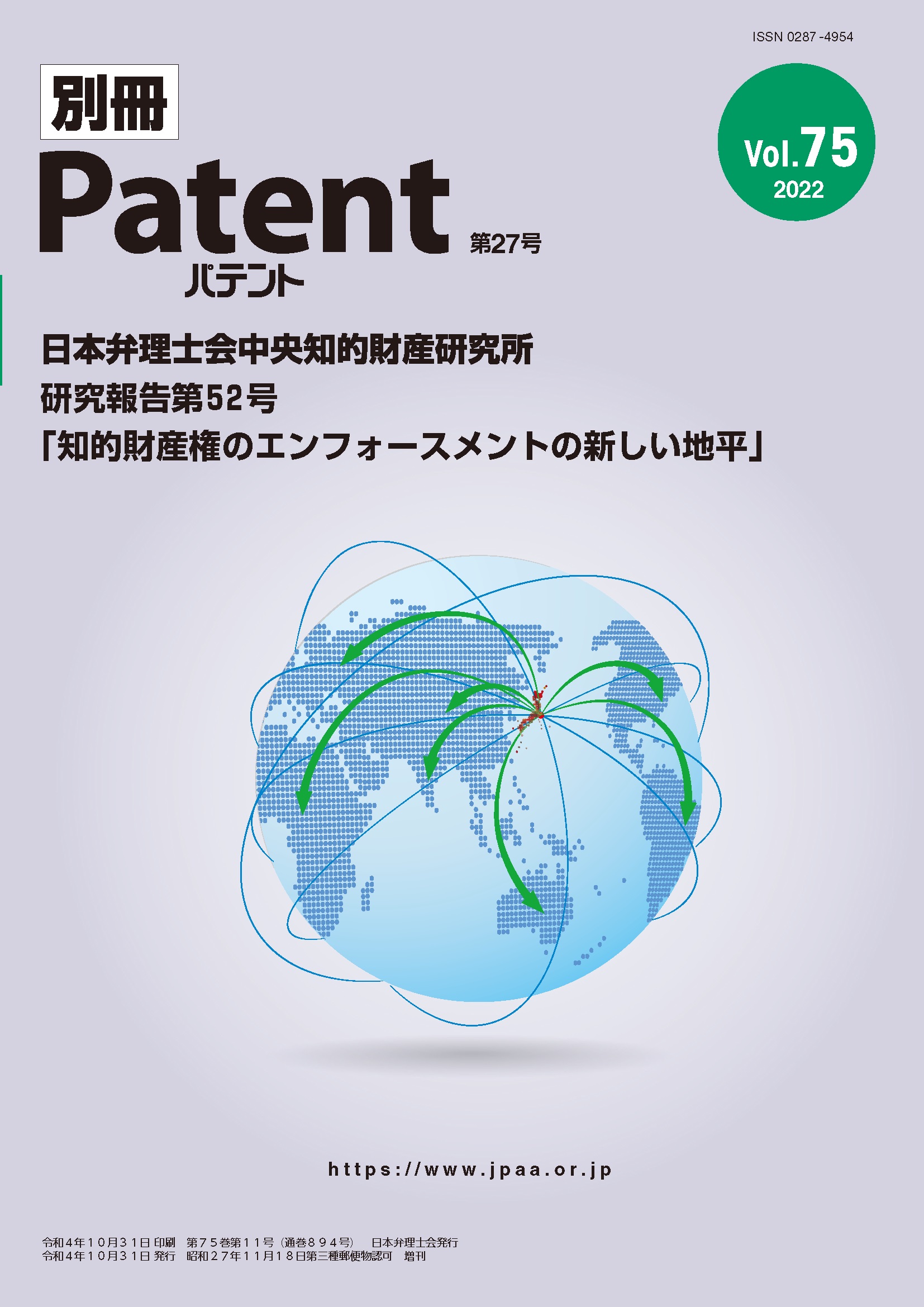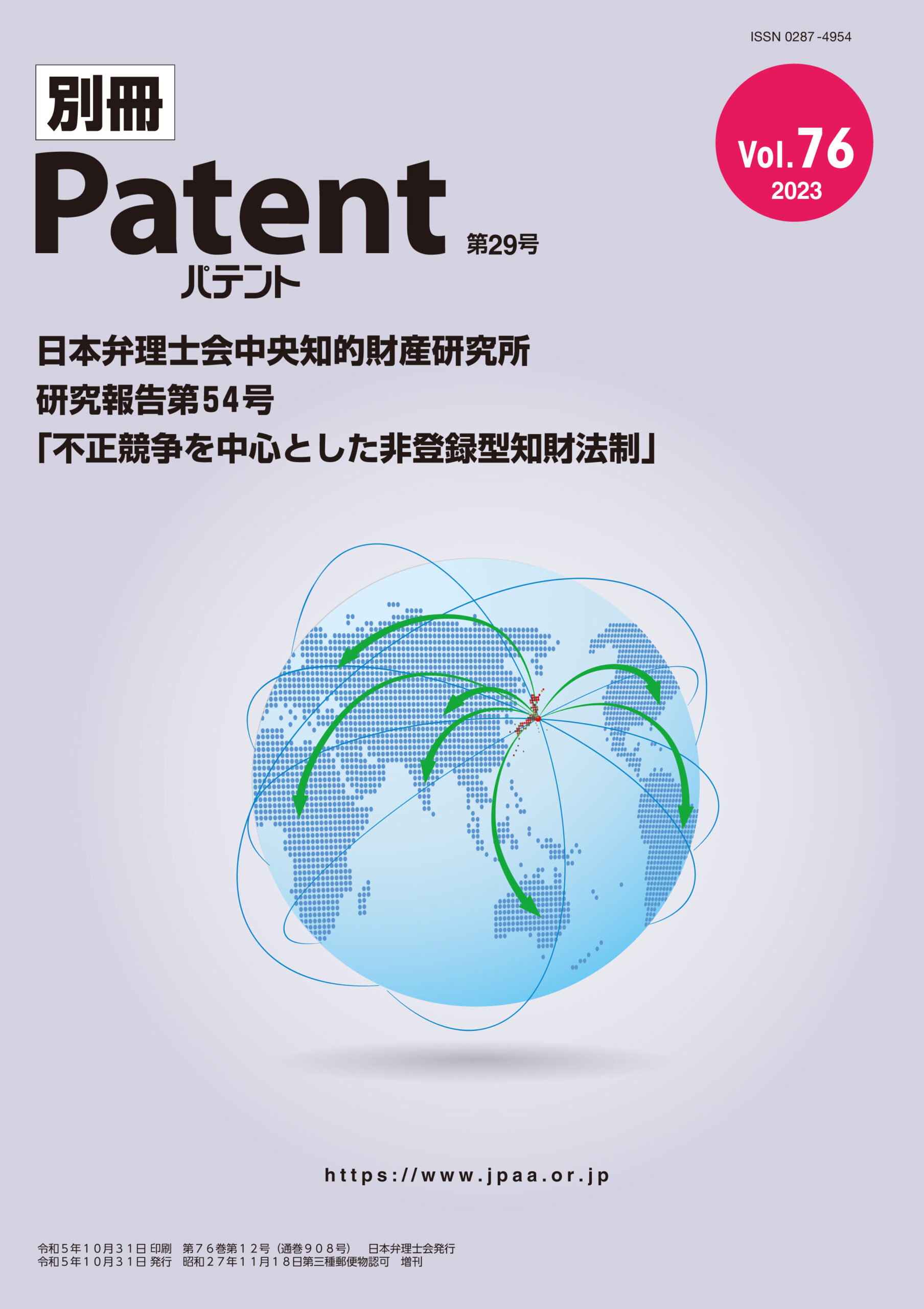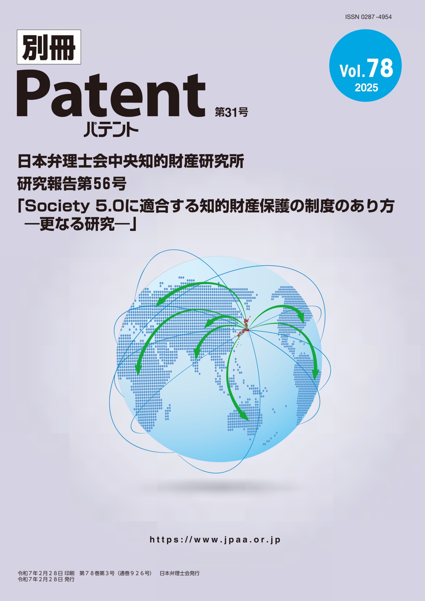 別冊パテント第22号から、冊子版の発行に先行して、ホームページでの先行公開を導入しました。