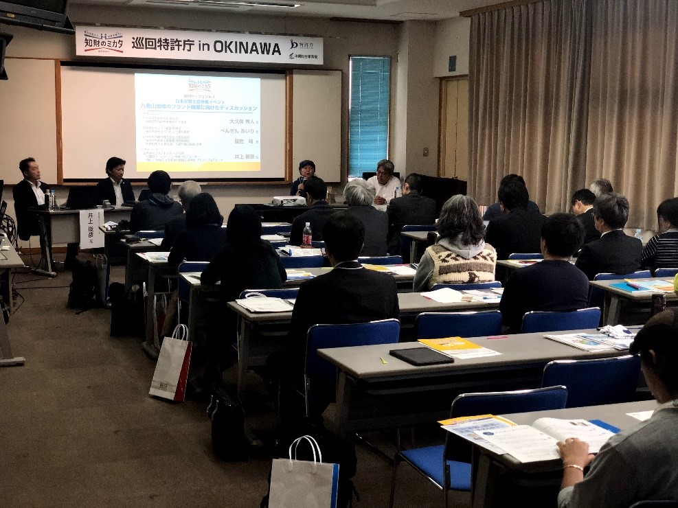 知財のミカタ~巡回特許庁in OKINAWA (八重山)~において併催イベントを開催しました。 令和2年1月20日(月)に開催されました「知財のミカタ~巡回特許庁in OKINAWA (八重山)~」(特許庁、内閣府沖縄総合事務局主催)において併催イベントを実施しました。 イベントでは、八重山地域内外のブランドづくりの事例紹介とブランド作りに有効な知的財産の活用法について、パネルディスカッションを行いました。