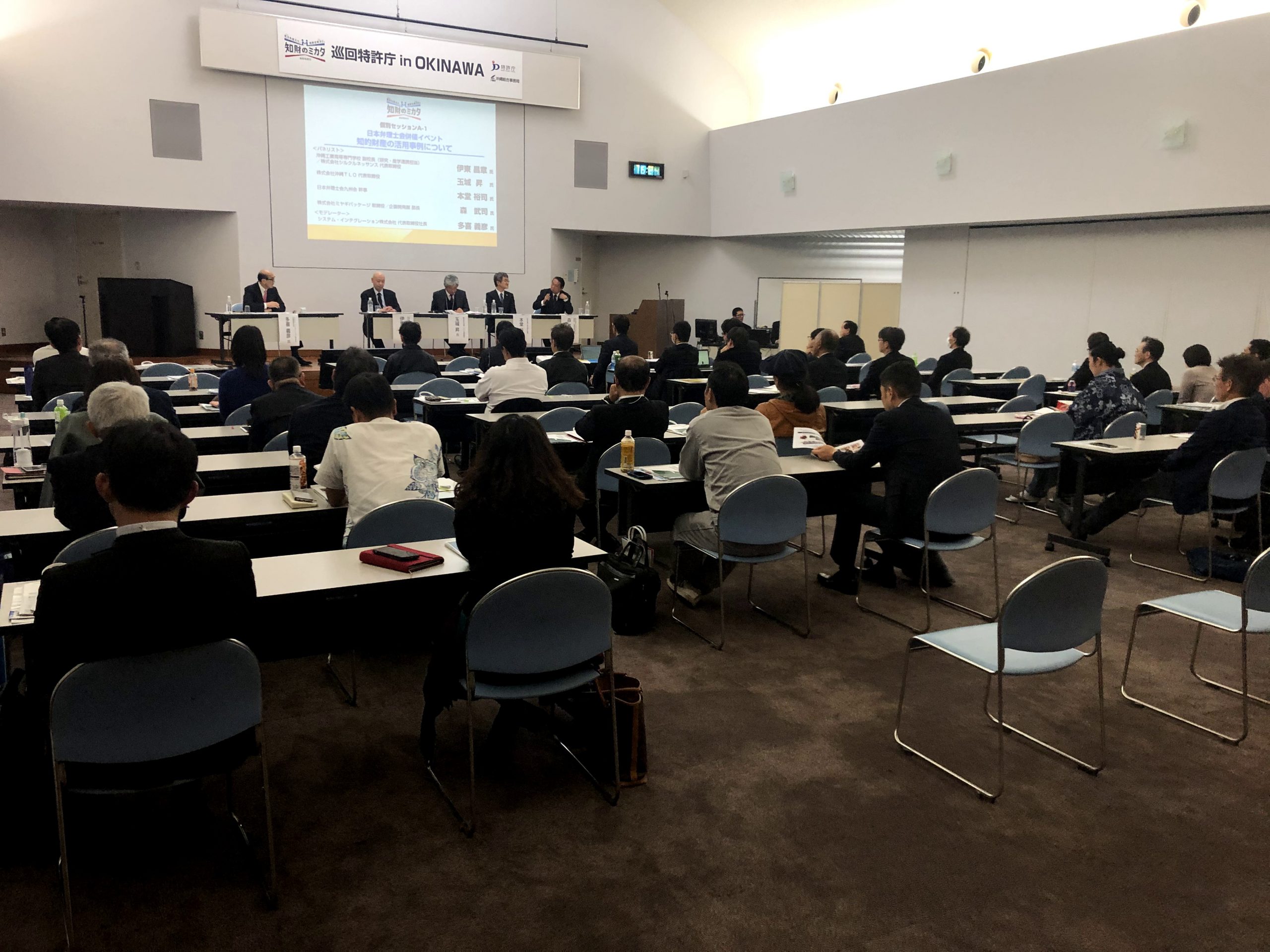 知財のミカタ~巡回特許庁in OKINAWA (うるま)~において併催イベントを開催しました。 令和2年1月30日(木)に開催されました「知財のミカタ~巡回特許庁inうるま」(特許庁、内閣府沖縄総合事務局主催)において併催イベントを実施しました。 イベントでは、企業と研究機関等との連携や海外展開の場面における知的財産の活用事例をパネルディスカッション形式で紹介しました。