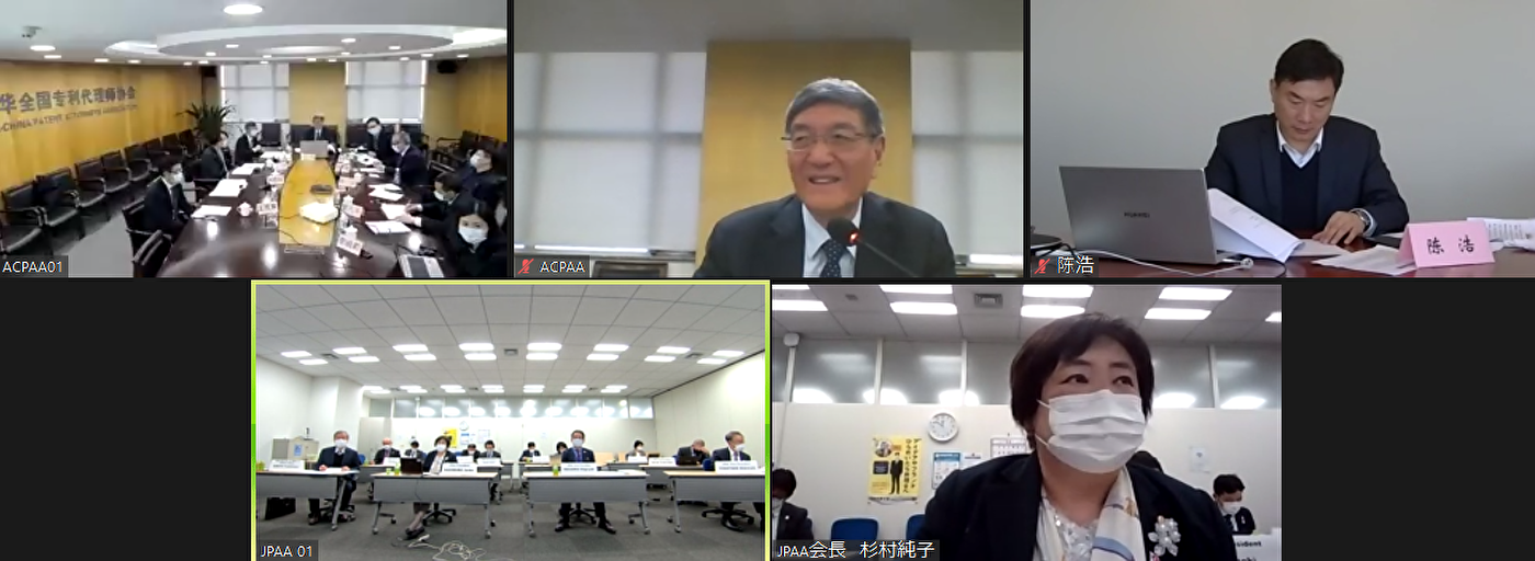 2021年11月24日(水)に中華全国専利代理師協会(ACPAA)と当会の代表でオンラインミーティングを開催いたしました。