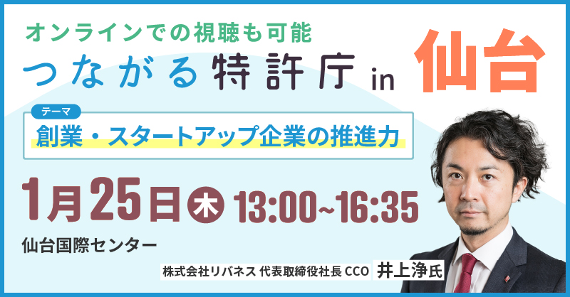 「つながる特許庁in 仙台」申込受付中!(1月25日(木))