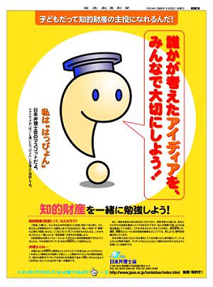 「財産」と聞くと、みんなは土地やお金にことを思い浮かべると思う。けど、色々な人が時間をかけて、知恵をしぼって生み出された”新しい作品”や”発明”も立派な「財産」なんだ。じつはこれってすごく大切なものなんだよ。これからはっぴょんと一緒にどんな”知的財産”があるのか勉強しよう。 知的財産は法律というルールによって作られた知的財産制度で守られているんだよ。その法律を守ってくれるのが特許庁(とっきょちょう)という役所なんだ。