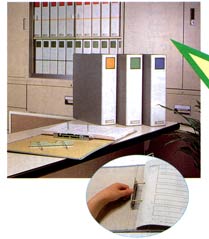 「消費者の満足」は同社が真っ先に掲げる経営理念で、現在では、とじ具の操作部分を改良して使い易くしたニュードッチファイルや材料を合成樹脂化したカラードッチファイル、さらには表紙ととじ具を容易に分別処理できると言う環境問題に配慮したスーパードッチファイルなども開発し、企業の事務合理化に寄与している。金森課長は「厚型のファイルといえば、当社の商品と言う認識が市場に浸透している」と言い切るが、それも「工業所有権の取得をつねに念頭に置いて新製品開発に取り組む」と言う裏付があっての発言で、これが他の追随を許さない理由にもなっている。