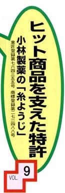 苦労の末の価値ある知的財産権歯や歯茎の健康に対する関心が高まり、歯ブラシと菌磨粉だけでなく、さまざま歯周病予防のための製品が市場に登場している。その代表的な製品の一つで、こうした口腔ケアの市場を拡大するのに寄与したのが、小林製薬の「糸ようじ」である。 「糸ようじ」は1987年11月18日の発売から、順調に売り上げを伸ばしてきた。小林製薬は続いて歯間ブラシも発売し、歯のケアに関する製品の市場育成にも力を注いだ。歯間清掃具の市場は1987年には30億円弱の規模だったが、97年には70億円を越すまでに成長した。この分野で小林製薬のシェアは四分の一と、トップクラスである。 開発に着手したのは1987年初頭。事前の周到な市場調査結果をもとに使いやすさを第一に考えて開発が進められ、糸の強度と、ようじ部分の曲り具合をポイントに改良が重ねられた。 発売の直前まで続いた試作品づくりを経て、「糸ようじ」は発売された。発売に先立って、「糸ようじ」の名称の商標を出願し、その形状については、最終候補品を含め数種の意匠を同時に出願したという。 |