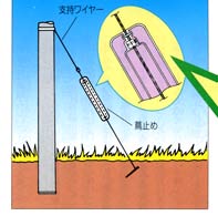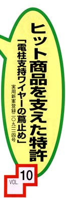 ヒット商品は私達が日常あまり目に触れることのない所でも活躍している。 今回紹介する商品は「電柱支持ワイヤーの蔦止め」である。都会生活者には馴染みがないが、ゴルフ等で一歩郊外に出るとすぐに目に付く商品である。電柱は全国に2千万本あると言われているが、特に山野に立設されている電柱には2〜3本の支持ワイヤーが斜めに取り付けてある。この支持ワイヤーに蔦が巻き付きどんどん上に登る。そしてついには電柱を伝って電線に達しショートさせ停電事故を引き起こす。山奥でこのような事故が起こるとショートした場所の特定や修理が容易ではない。 そこで登場したのが今回の商品である。この商品の開発のきっかけは、蔦公害に泣かされ続けてきた電力会社からの依頼による。開発を担当したミツギロン工業株式会社の森本重男社長は、「耐久性と完壁性と経済性を同時に満たさなければならない厳しい注文だったけれども、当社のブロー成形技術がヒントになった」という。 実は従来からこの種の蔦止め具はあったが、何しろ設置場所の年間温度差が70度に達する上に、強列な紫外線と風雪にさらされ、設置後三〜四年で役に立たなくなっていた。 |