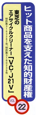 2000年3月に発売された東芝のエアサイクルクリーナー(掃除機)VC-J21Vは、100%排気ゼロの驚異的新製品としてマスコミで大々的に取り上げられた。市場の反応も大きく、発売当初の出荷量は予想の倍を超えたという。その背景には、開発・製品化の要因ともなった住環境への関心の高まりがある。 従来のクリーナーが吸込み口から取り込んだ空気を排気として本体の外に出すものであるのに対して、排気ゼロのクリーナーは空気を循環させる方式を取っている。 ゴミを吸取っている間は、クリーナーの吸込み口が畳や絨毯に吸い付かず、吸込み口を畳等から離すと吸込み口から空気が出てくるため、消費者からは「どうなっているのか」という問い合わせもあったという。このクリーナーがいかに画期的なものかを物語るエピソードといえよう。 実は、本体から排気を出さないというアイディアそのものは、40年ほど前からあったそうだ。しかし、製品化されたものは一つもなかった。東芝のクリーナーの設計、開発に当たる東芝テックでは、10年前から排気ゼロに向けた試行錯誤が繰り返されてきた。消費者の排気ゼロへのニーズが明確になった'97年から本格的に取り組み、試作をつくる度に特許を出願し、独自の技術を蓄積した。循環路が短く製作が比較的容易なハンディタイプのクリーナーを先行して発売した。この段階では本体から外に出される排気を70%までカットできた。 |