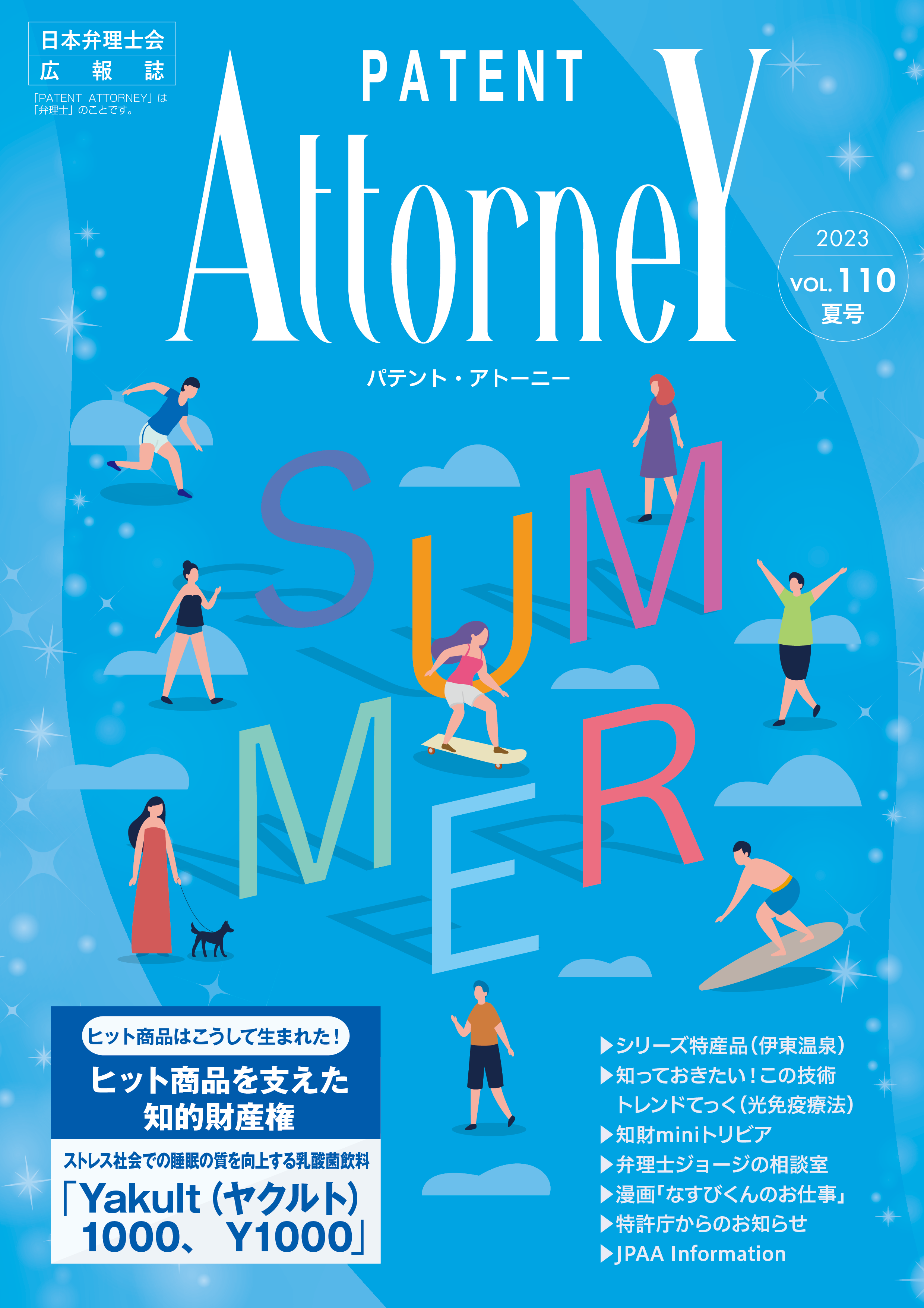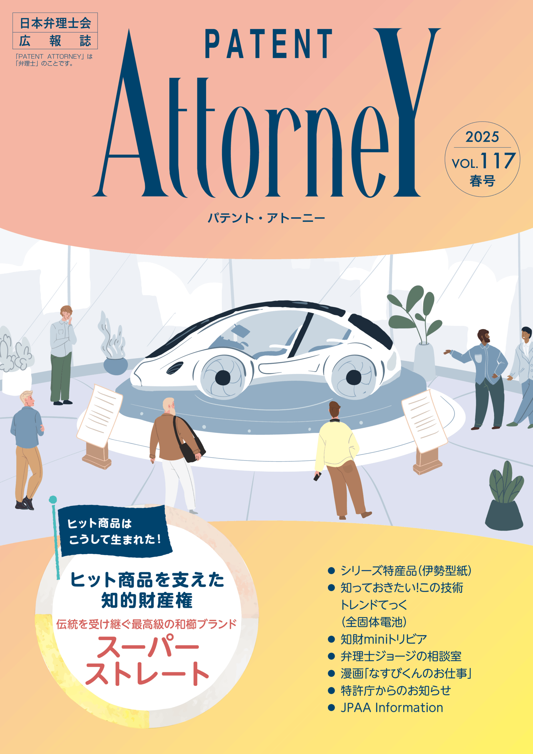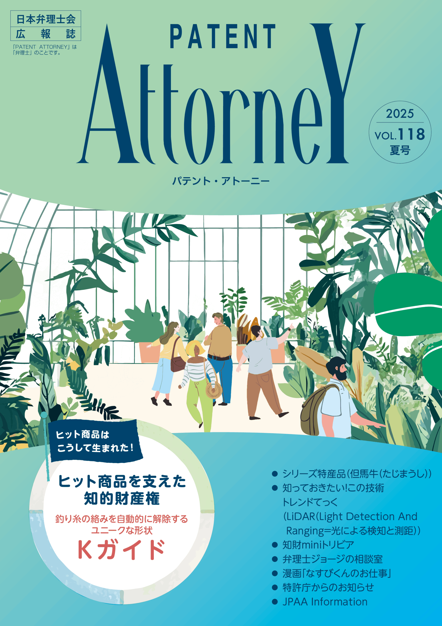 日本弁理士会では、一般の方々(特に中小企業関係者)に日本弁理士会の活動、弁理士の仕事、知的財産権等について広く知ってもらうため、広報誌「パテント アトーニー」(英語で弁理士のことです)を季刊で発行し、全国の関係機関や団体に送付しています。従来、知的財産権に関する書籍や資料は、堅苦しくて難解 なものが多かったのですが、この広報誌は読みやすく解説しております。