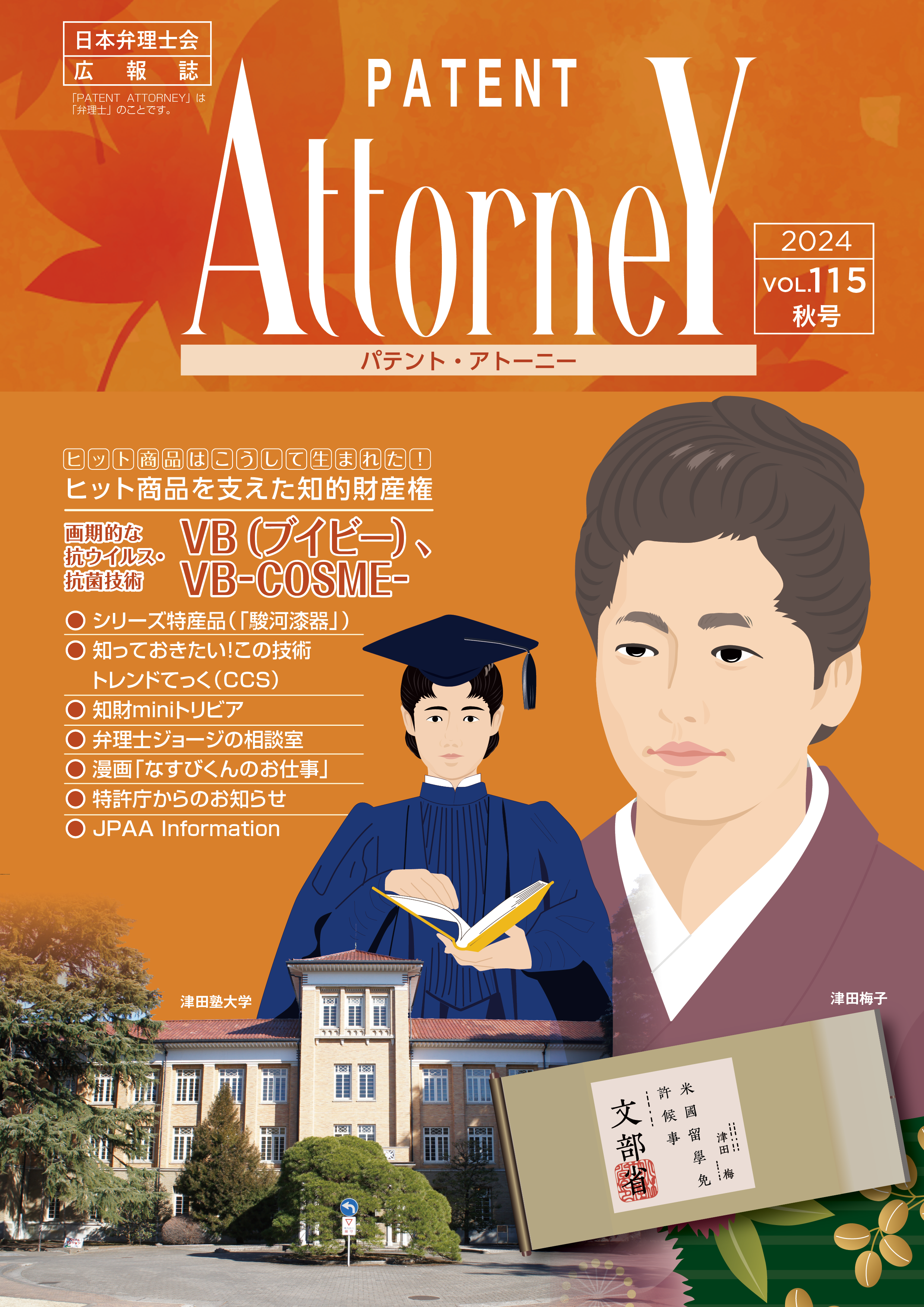 日本弁理士会では、一般の方々(特に中小企業関係者)に日本弁理士会の活動、弁理士の仕事、知的財産権等について広く知ってもらうため、広報誌「パテント アトーニー」(英語で弁理士のことです)を季刊で発行し、全国の関係機関や団体に送付しています。従来、知的財産権に関する書籍や資料は、堅苦しくて難解 なものが多かったのですが、この広報誌は読みやすく解説しております。